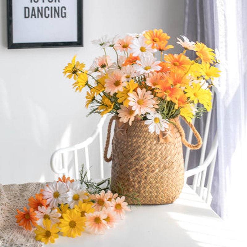 Hot sales simulation gerbera fulang flower creative home decoration simulation small daisy flower. Naweida artificial flowers with small ceramic vase silk roses fake plants eucalyptus leaves berries flower arrangements decorations for home(white). 1 bunch artificial daisy flower(only flowers,flower pot is not included). 1 x artificial small daisy flower note: From a classic white daisy, to bouquets that include pink daisies and yellow daisies.